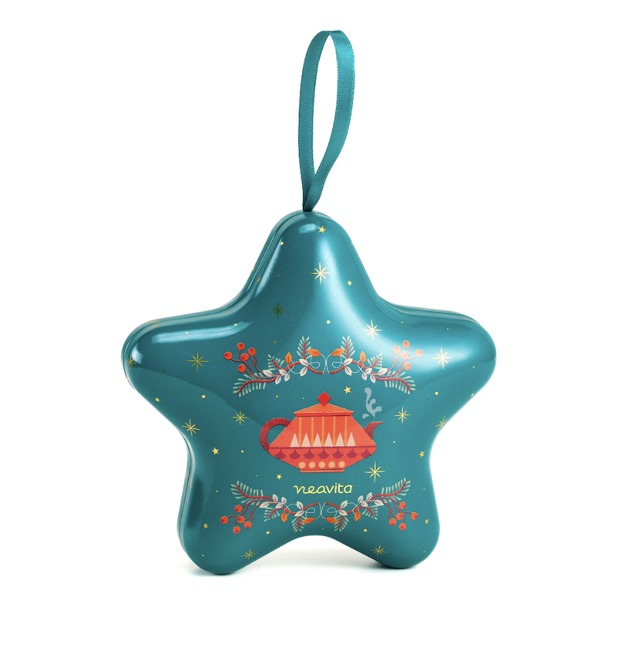 La latta a forma di stella firmata NEAVITA veste di magia il Natale con l’infuso Arancia e Cannella.