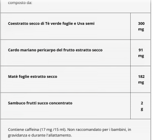 PRECAUZIONI D’USO: la dose giornaliera di 15 ml apporta 9,0 mg di (-)-epigallocatechina-3-gallato. Non consumare un quantitativo giornaliero pari o superiore a 800 mg di (-)-epigallocatechina-3-gallato. Il prodotto non deve essere consumato a stomaco vuoto nè se nello stesso giorno si consumano altri prodotti contenenti Tè verde.