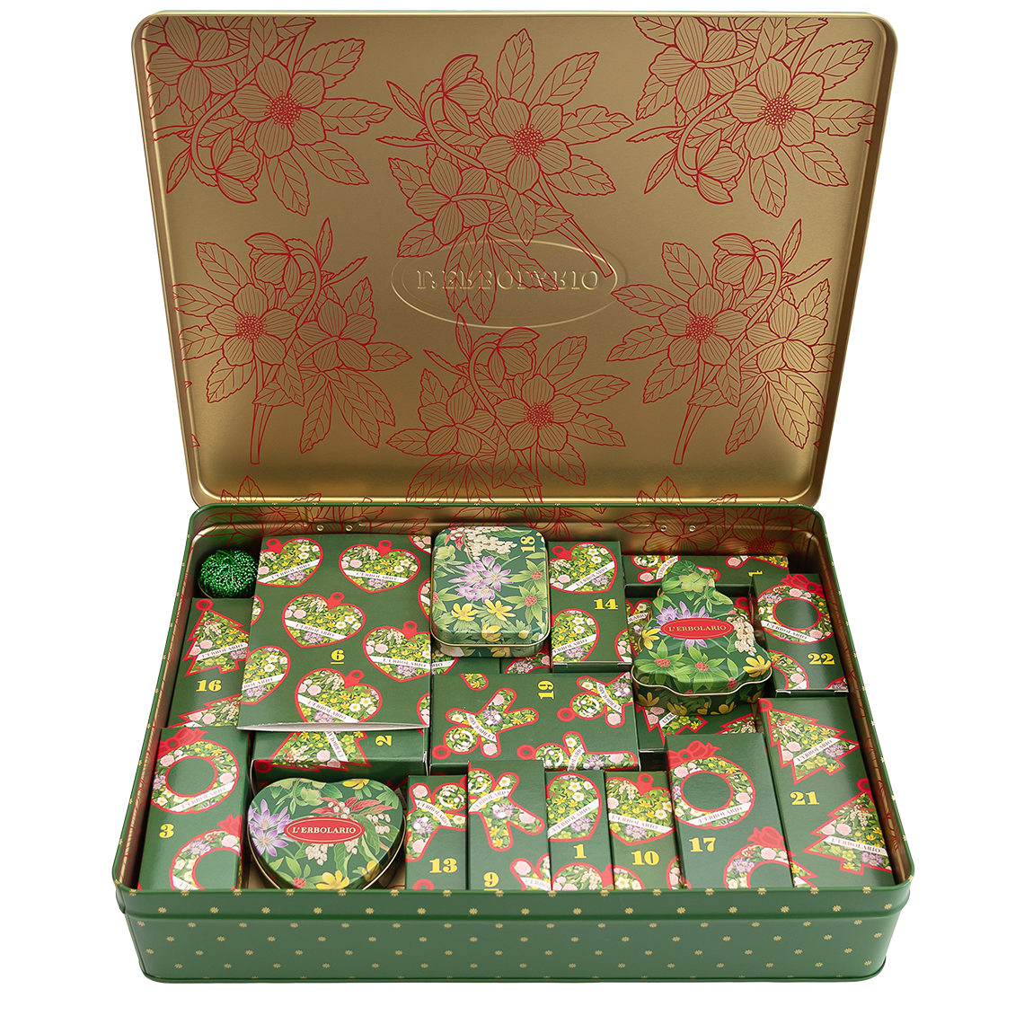 Vivi una magica attesa del Natale insieme al Calendario dell’Avvento 2025 L’Erbolario! 24 sorprese di bellezza ti aspettano all’interno della bellissima scatola in latta decorata: ogni giorno apri una delle scatoline e scopri un cosmetico selezionato tra i nostri prodotti bestseller e le ultime novità. I migliori trattamenti L’Erbolario ti aspettano in pratici formati per prendersi cura di viso, corpo e capelli.