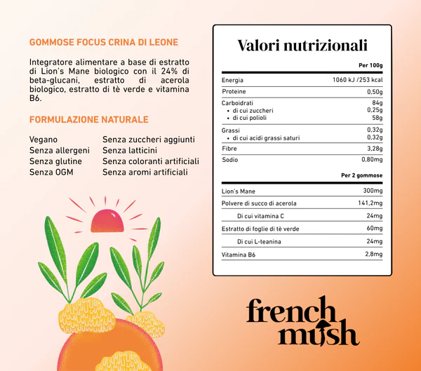 FRENCH MUSH Gummies ( Hericium/Lion’s Mane + Acerola + L- Teanina)
