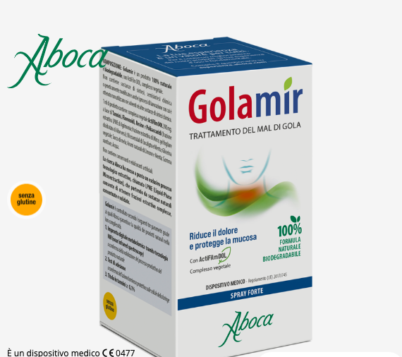 Golamir 2Act calma il dolore e l’irritazione grazie ad un’azione protettiva della mucosa orofaringea.