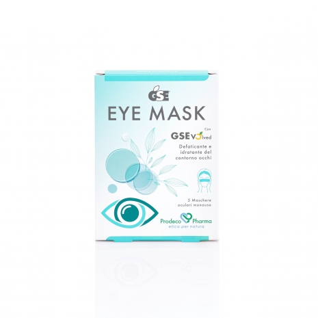 GSE EYE MASK è un prodotto cosmetico in compresse oculari monouso, a forma di maschera, imbibite di una soluzione a base di GSEvo®lved, estratti di Sambuco, Alga verde, Altea, Calendula e Avena, acque di Eufrasia e Amamelide, Acido ialuronico a basso peso molecolare, Betaina ed Eritritolo per un’azione decongestionante, lenitiva, defaticante e idratante. È indicata per donare sollievo alle palpebre e al contorno occhi, coadiuvando anche l’azione dell’eventuale uso di gocce oculari in caso di problematiche dell’occhio.