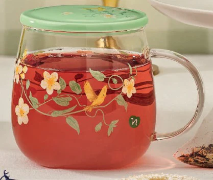 Tazza in vetro con coperchio rosa INFUSI DI PRIMAVERA