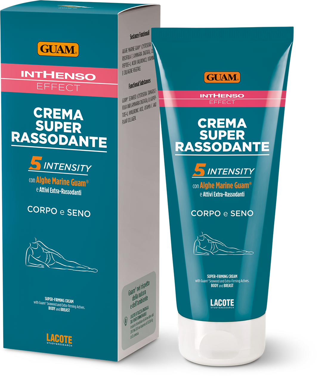 Guam Inthenso Effect Crema Super Rassodante 5 Intensity è un trattamento corpo ad alta intensità pensato per migliorare tonicità, compattezza ed elasticità della pelle di corpo e seno.