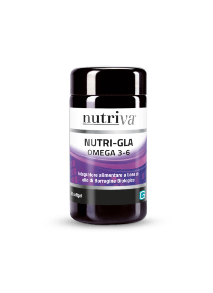 L’olio di semi di borragine è tra le fonti più importanti di acido gamma linolenico (GLA), acido grasso polinsaturo della serie omega 6, efficace nella prevenzione e trattamento di numerose problematiche. La carenza di questo acido grasso semiessenziale è responsabile dello sviluppo di varie problematiche quali dermatiti atopiche, eczemi. L’olio di borragine mantiene l’integrità e la funzionalità delle membrane cellulari. I principi attivi contenuti in Nutriva NUTRI-GLA svolgono un’azione antiossidante e aiutano il mantenimento dell’equilibrio della cute, favorendone l’elasticità e l’idratazione
